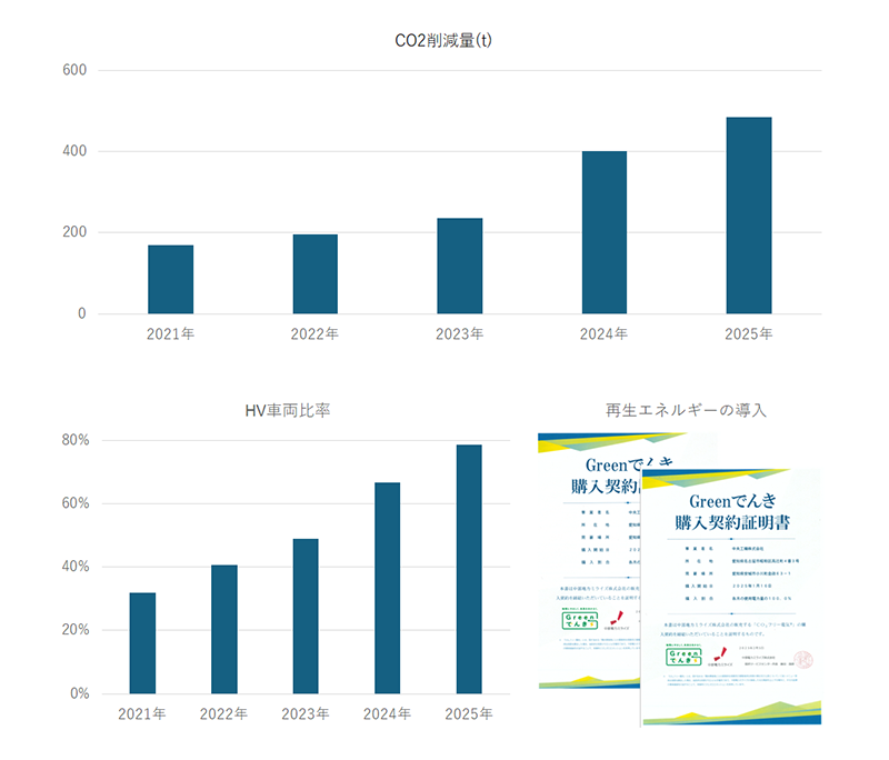 2025年時点では、約79%の車両がハイブリッド車に切り替え済みであり、目標達成に向けて順調に進捗しております。